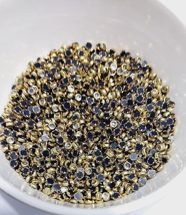 Premium Round Kundan Stones – White & Champagne Faceted Crystals in Gold-Plated Brass Settings for Aari Embroidery, Bridal Couture, and Jewelry Making(50g) – 3mm