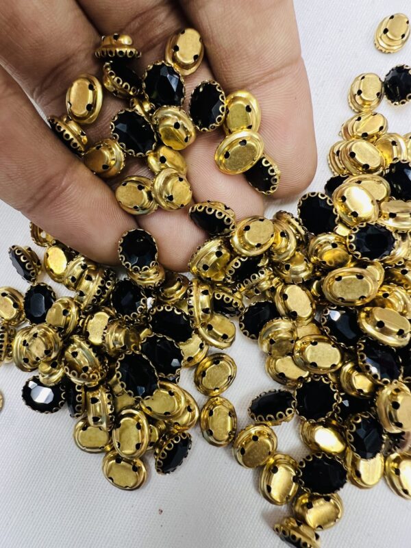 Premium Clip Stones | Gold-Plated Oval Stone Settings (10×12)(20Pc) – Black