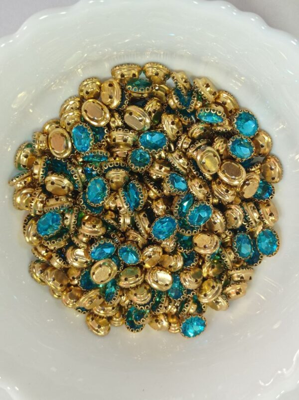 Premium Clip Stones | Gold-Plated Oval Stone Settings (8×10)(20Pc) – Blue-green