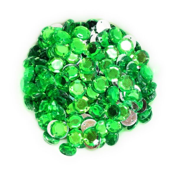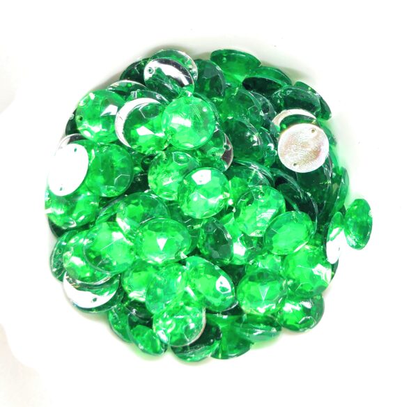 12 Cut Round Flatback Two Holes Sew-On Rhinestone Crystals Acrylic Beads,Kundan Stone with Hole for Sewing Modal Jewellery Making Embroidery and Craft Work 12mm (480Pc) – Green
