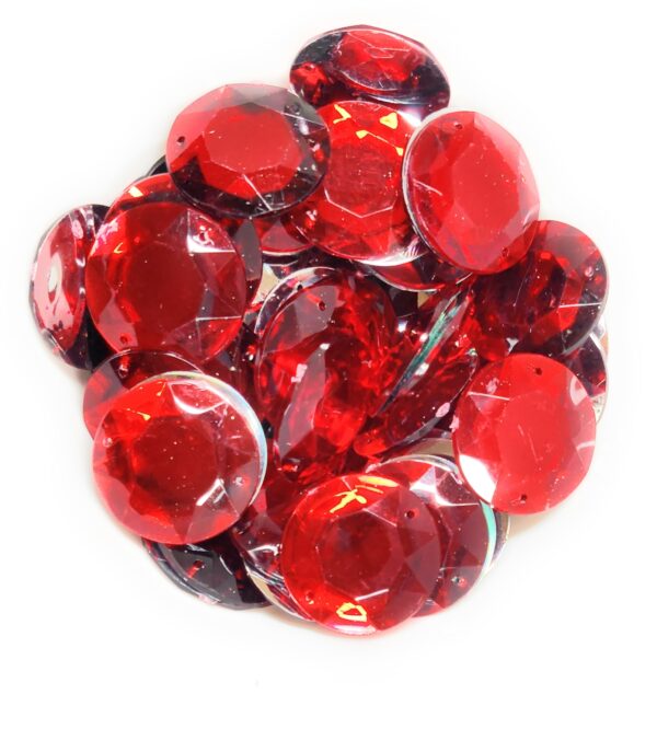 12 Cut Round Flatback Two Holes Sew-On Rhinestone Crystals Acrylic Beads,Kundan Stone with Hole for Sewing Modal Jewellery Making Embroidery and Craft Work 14mm (210Pc) – Red