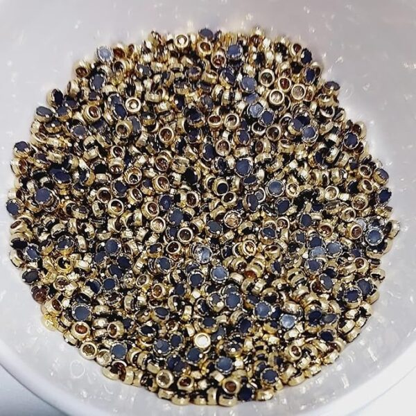 Traditional Gold-Plated Kundan Stones – Faceted Glass Crystals in Brass Metal Settings for Aari Embroidery, Bridal Lehengas, and Jewelry Making(Round) (Pack of 50g) – 3mm