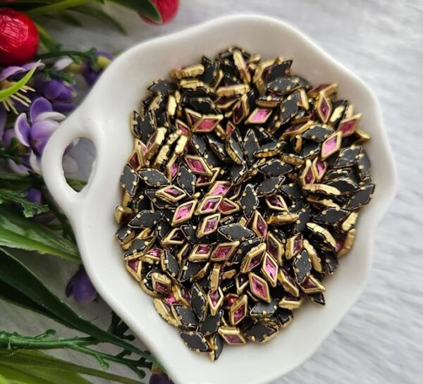 Gold-Plated Rhombus/Diamond Kundan Stones in Gold-Finished Settings (4×8)(50g) – Pink