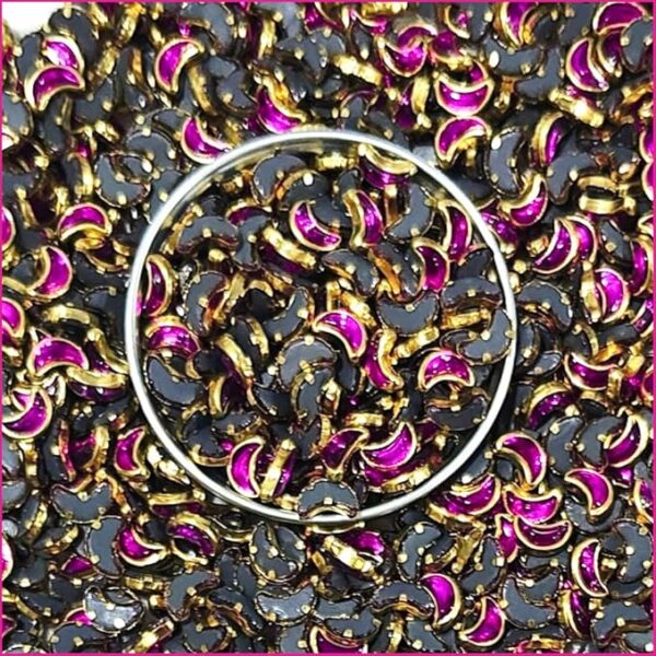 Half-Moon (Crescent) Kundan Stones in Gold-Finished Settings (4×8)(50g) – Magenta-Purple