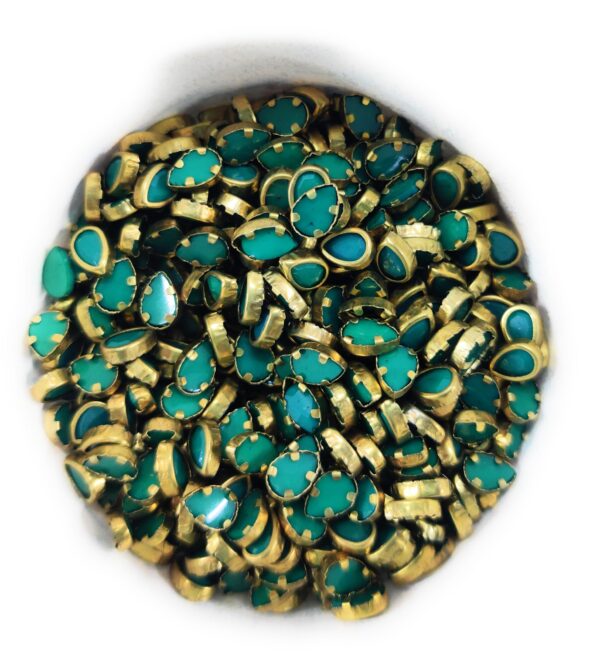 Fitting Colour Kundan Stones (Drop) for Embroidery, Craft and Jewellery Making (50g) – Blue-green, 6×8