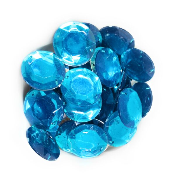12 Cut Round Flatback Two Holes Sew-On Rhinestone Crystals Acrylic Beads,Kundan Stone with Hole for Sewing Modal Jewellery Making Embroidery and Craft Work 14mm (210Pc) – Sky blue