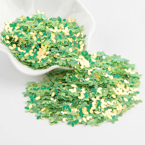 Miniature Flower-Shaped Resin Sequins – Green, 100g