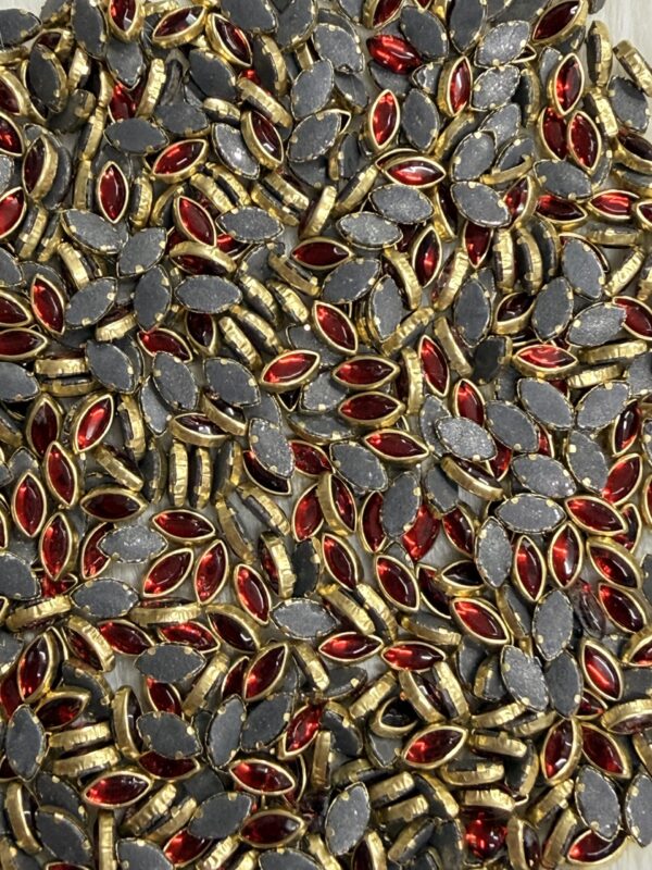 Marquise (Eye/Leaf) Shaped Kundan Stones in Gold Settings (3×6)(50g) – Red