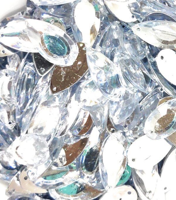 Drop Flatback Two Holes Sew-On Rhinestone Crystals Acrylic Beads,Kundan Stone with Hole for Sewing Modal Jewellery Making Embroidery and Craft Work ( DROP/260Pc) – White