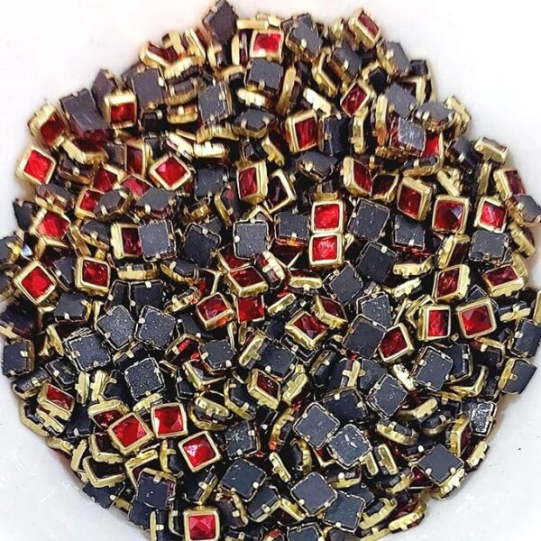 Square Kundan Stones in Gold-Finished Prong Settings (4×4)(50g) – Red