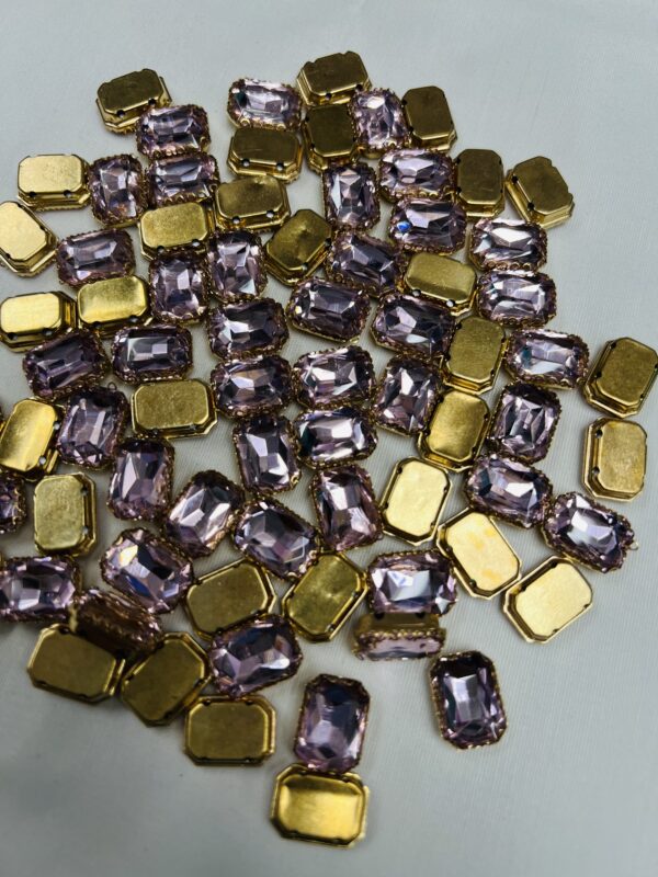 Rectangle Emerald-Cut Clip Stones | Gold Frame Aari & Jewelry Embellishments(10×14)(20Pc) – Purple