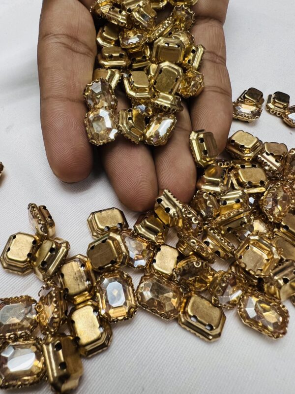Rectangle Emerald-Cut Clip Stones | Gold Frame Aari & Jewelry Embellishments(8×10)(20Pc) – Gold