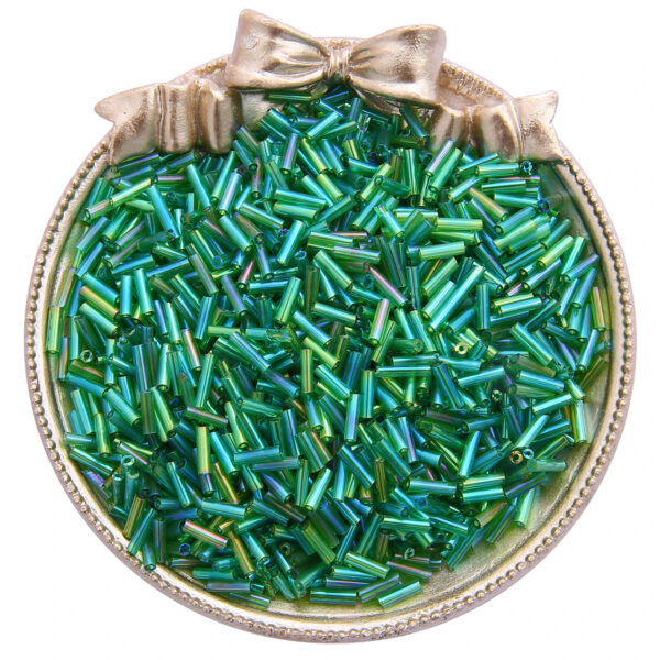 Premium Luster Finish Bugle Beads – Colorful Glass Tube Beads for DIY Crafts (13/0) – Green, 450g
