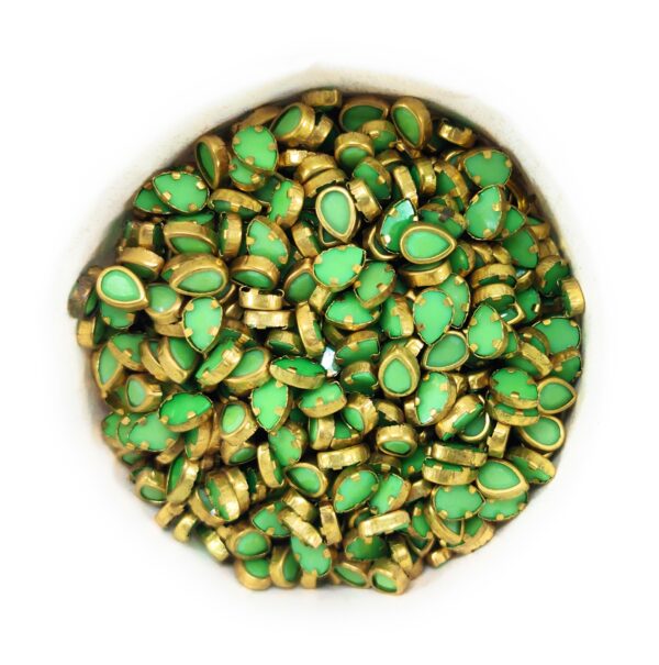 Fitting Colour Kundan Stones (Drop) for Embroidery, Craft and Jewellery Making (50g) – Yellow-green, 6×8