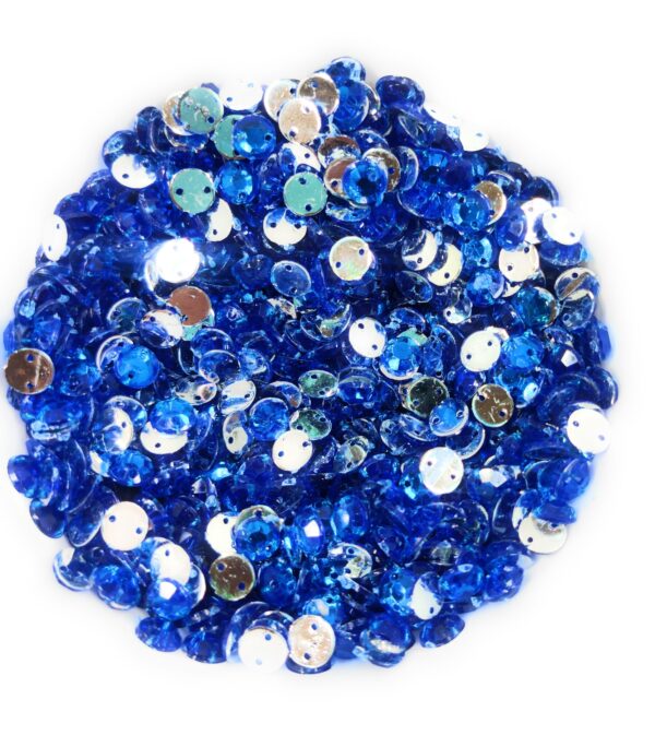 12 Cut Round Flatback Two Holes Sew-On Rhinestone Crystals Acrylic Beads,Kundan Stone with Hole for Sewing Modal Jewellery Making Embroidery and Craft Work 8mm (980Pc) – Blue