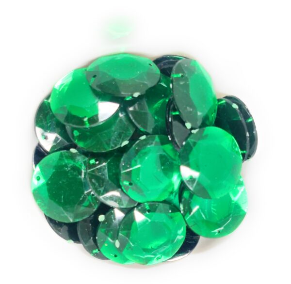 12 Cut Round Flatback Two Holes Sew-On Rhinestone Crystals Acrylic Beads,Kundan Stone with Hole for Sewing Modal Jewellery Making Embroidery and Craft Work 14mm (210Pc) – Dark Green